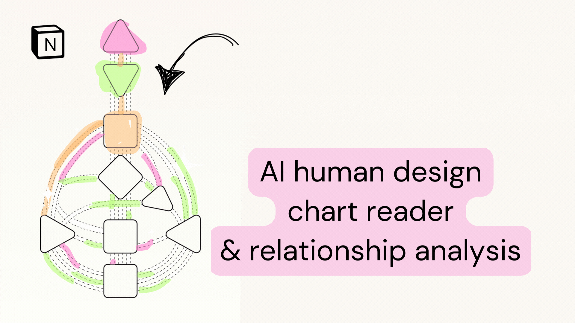 1 x human design AI reader, 1x human design relationship AI analysis, 1x notion template for endless human design readings